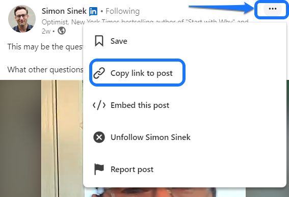 Once you've found the post, click the three dots in the top right corner. From the menu that appears, select 'Copy Link to Post'. Easy, right? ๐