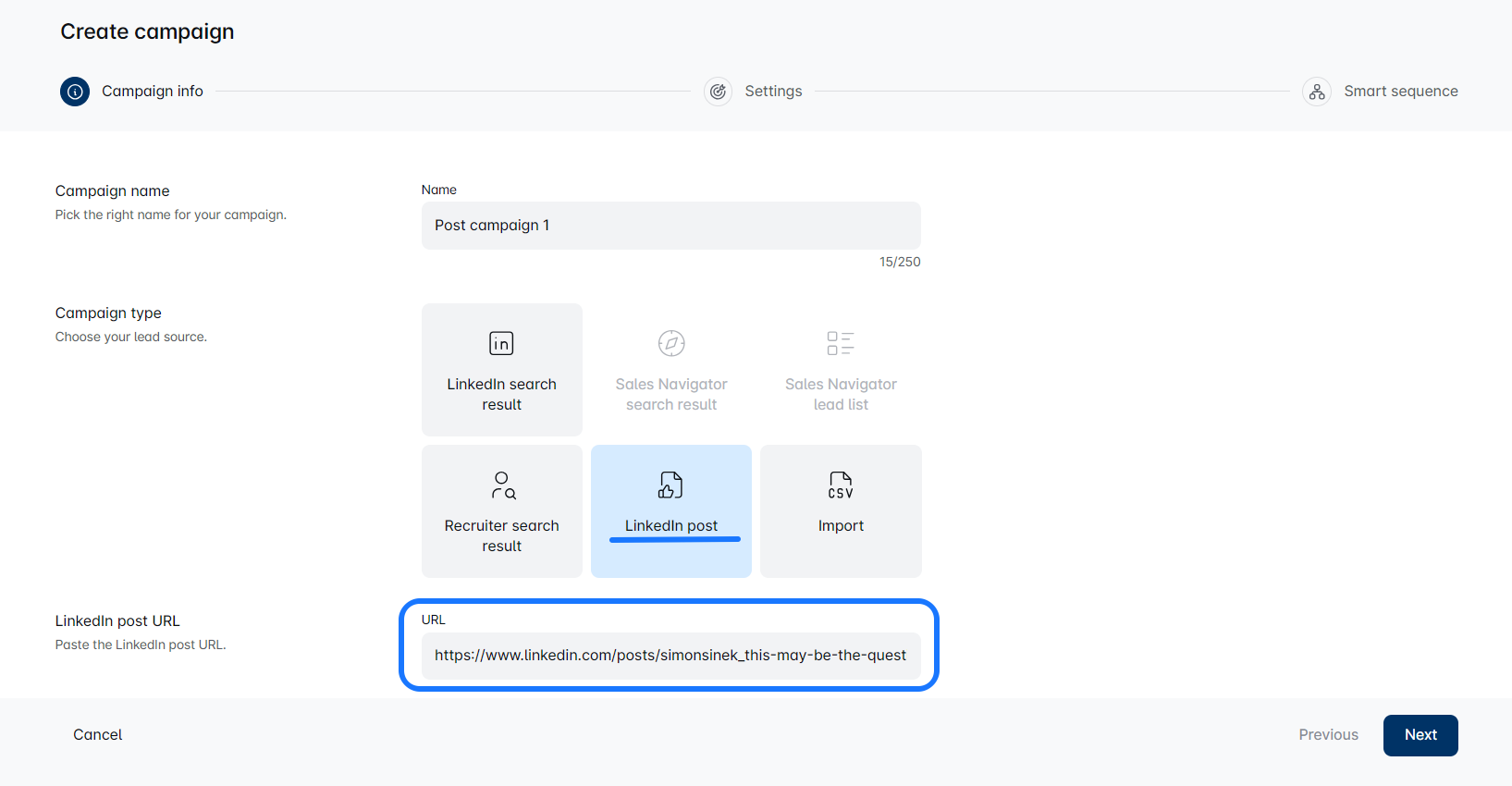 Maximize your reach using the ROVERโs Post Engagement campaign! Target LinkedIn users interacting with relevant posts, and connect with an audience already interested in your industry. Simply find an engaging post, copy the link, and paste it into your dashboard. Personalize your outreach to foster connections and increase conversions. Ready to elevate your campaign strategy? Dive in and start connecting! ๐ฑ๐