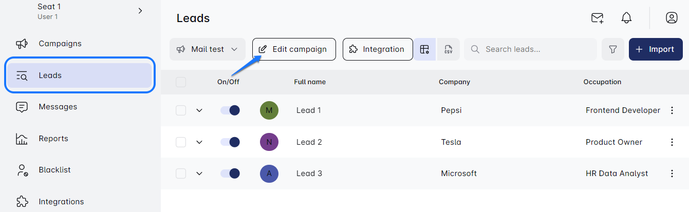 - Alternatively, you can enter edit mode by selecting a campaign and then choosing the 'Edit Campaign' tab from the Leads page.