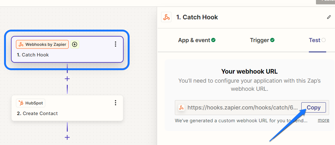 - Click “Continue” and test the integration step to make sure the data is sent correctly to HubSpot.