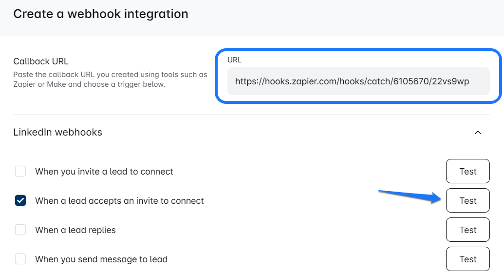 - Select the trigger event in the ROVER, like “when a lead accepts an invite to connect.”