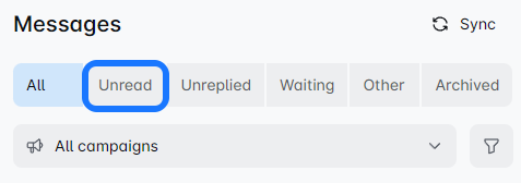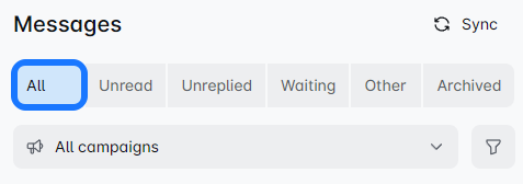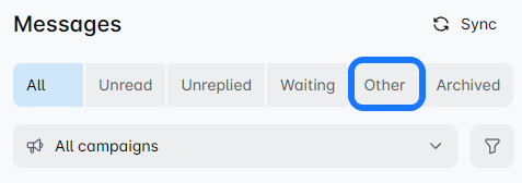 Once you connect your LinkedIn profile to the ROVER, this filter shows your non-campaign-based messages. ❗ Messages sent before connecting your account won't appear here.