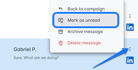 This is the default view of the inbox, where you can see messages from all the campaigns you’ve run on the ROVER. You’ll also get a glance at messages from all three inboxes that the Smart Inbox merges: LinkedIn, Sales Navigator, and Email 📧.